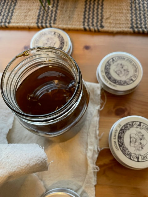 2 oz St John's Wort Pomada. Supports skin, muscles, and bones. Use on bug bites, bruises, cuts, and scrapes. Rub your muscles after a hike or strenuous workout. Apply to joints especially the hands if you work on the computer all day long.